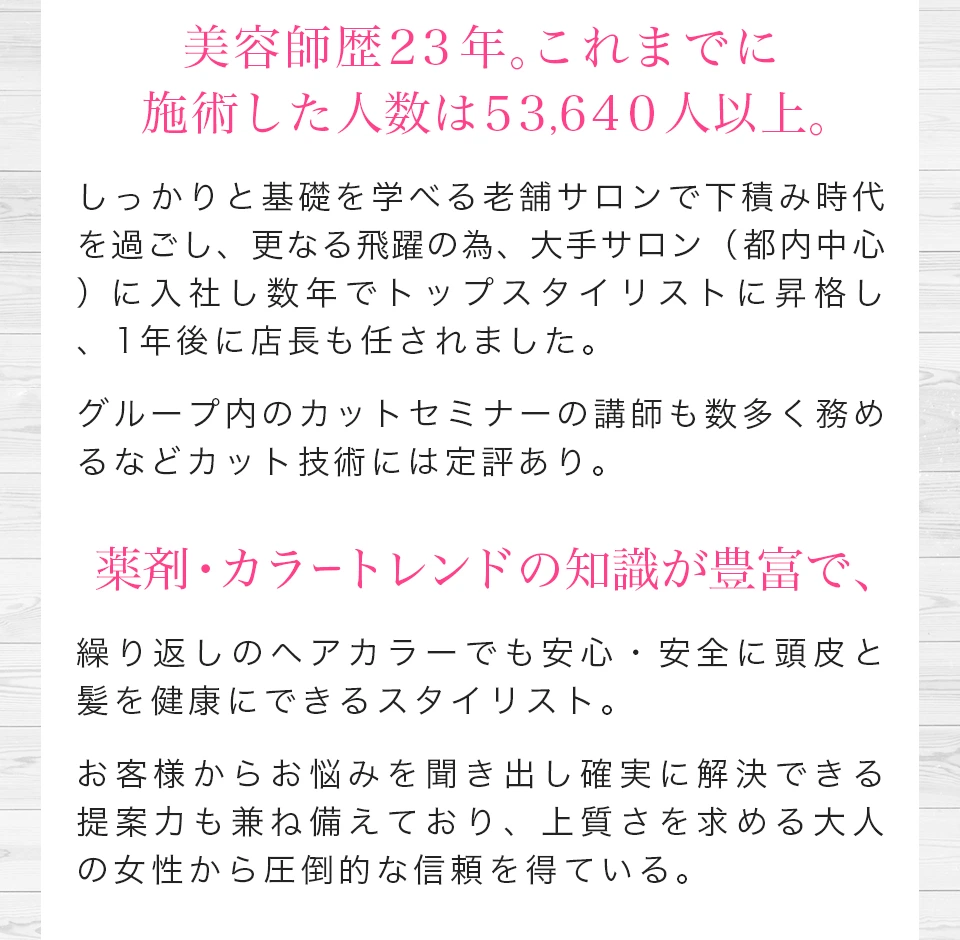 1つは、これくらいのインパクトがあれば、今通っている美容室があるけど「我慢して言えない」、「相談しづらい」、「髪・頭皮・ヘアスタイルの悩みにもう一度向き合いたい」そんなあなたにご来店してもらえるかな、と思ったからです。